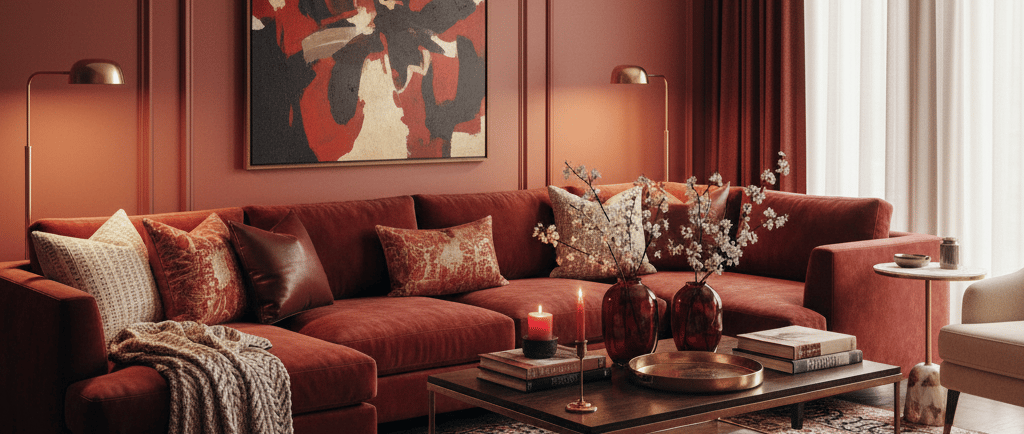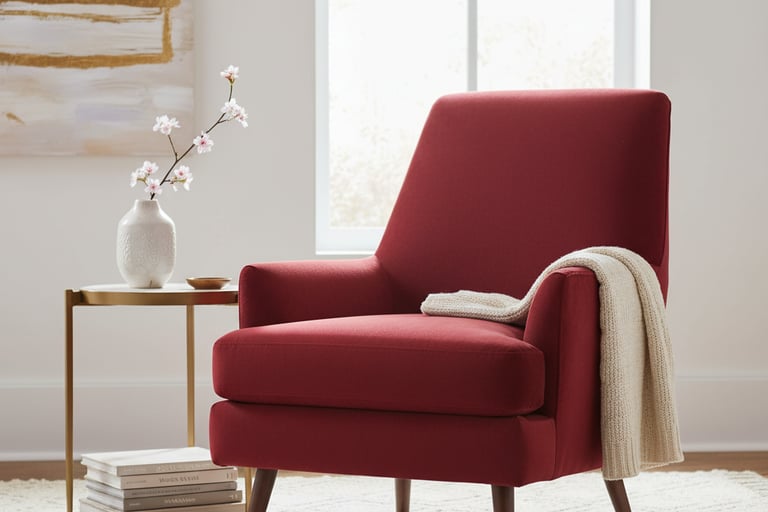 Velvet Sofa or Armchair: Imagine a sumptuous cherry velvet sofa in your living room, becoming the instant star of the show.