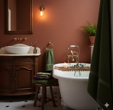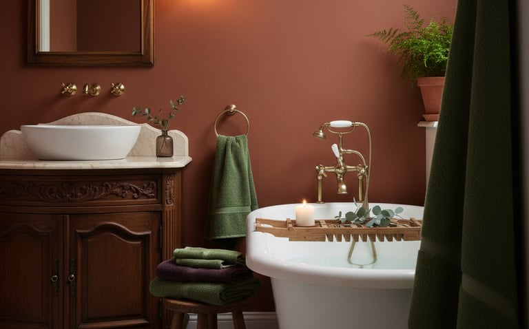 An accent wall in a rich terracotta or a deep plum can create instant drama and warmth. Pair it with fluffy towels in coordinating shades like olive green or deep brown. Add a beautiful wooden vanity with a dark stain and gold hardware for a touch of luxury. Don't forget ambient lighting with dimmable fixtures or even a few candles for ultimate relaxation.