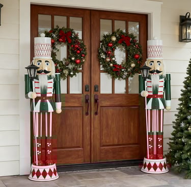 Get inspired with these stunning outdoor Christmas decor ideas! See how to make a statement with large Christmas decorations, including giant nutcrackers for your porch, elegant outdoor reindeer statues, and a beautiful "JOY" nativity scene for the yard. Plus, discover the best snowflake string lights and Christmas wreaths to complete your holiday look. Click to shop these festive outdoor holiday decorations and transform your curb appeal!